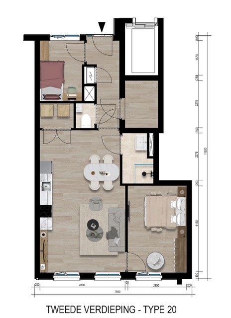 2-kamerappartement – Bouwnummer 20 (Tweede verdieping, 63 m² GO) met balkon