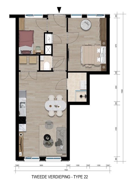 3-kamerappartement – Bouwnummer 22 (Tweede verdieping, 60 m² GO) met balkon
